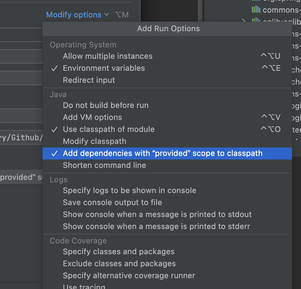 Because part of the dependency is provided, idea needs to do a special config. Click on the right Modify Options in the Run/Debug Configurations setting. Check the Add Dependencies with "Provided" scope to classpath option.