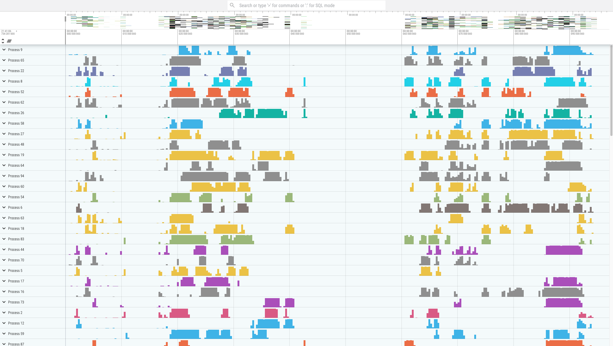 The tool is very powerful. For example, it is easy to see how the same Task is scheduled across cores.
