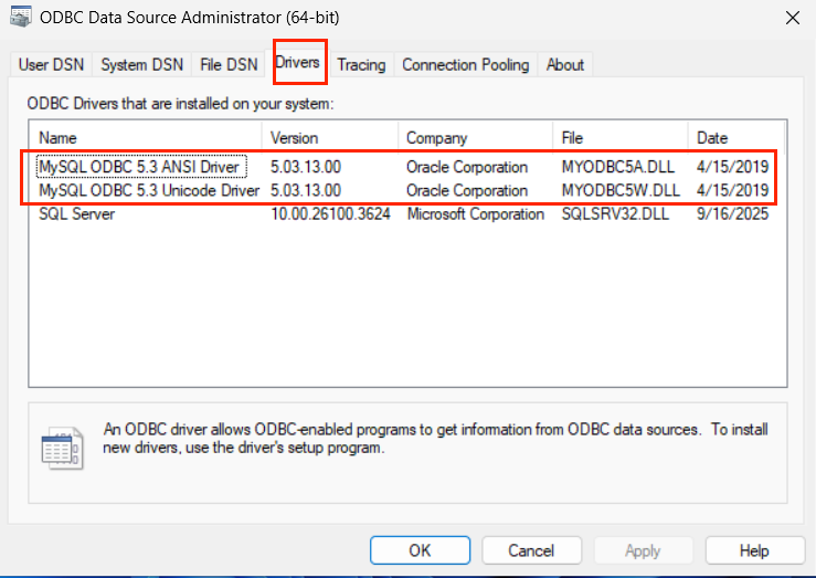 下载安装 Mysql ODBC,并配置 (版本为 5.3)。